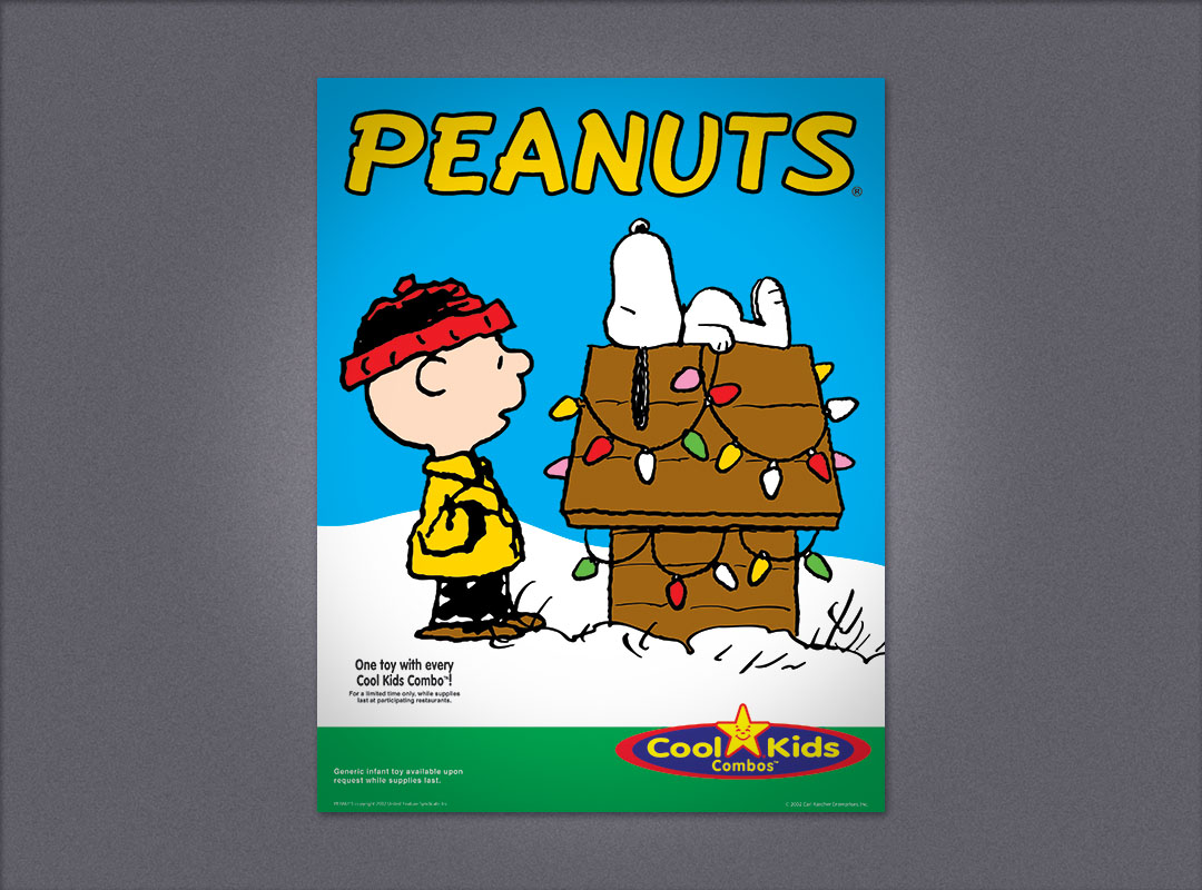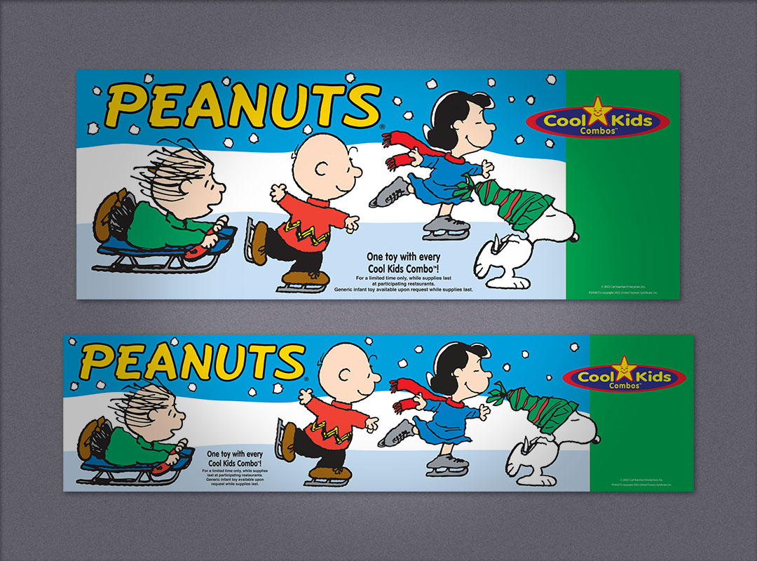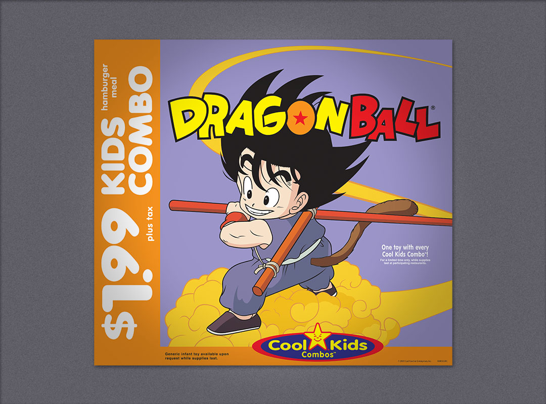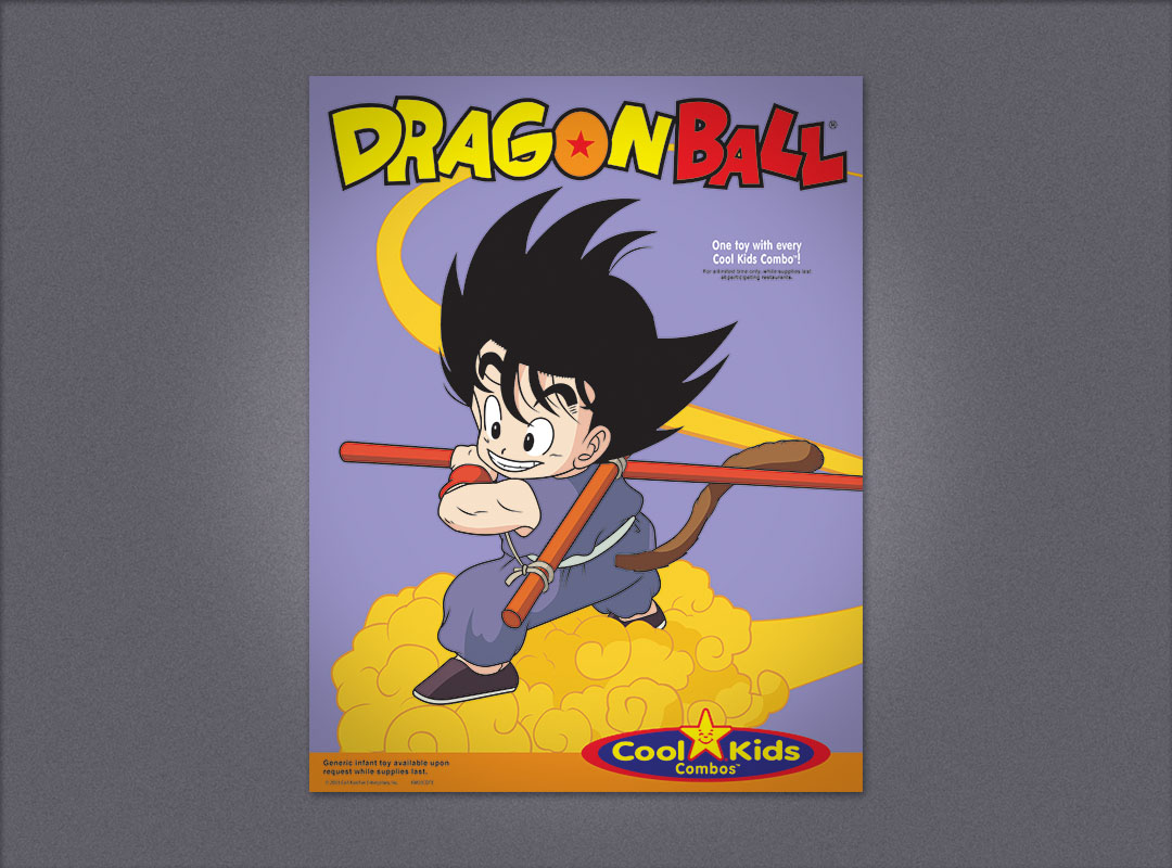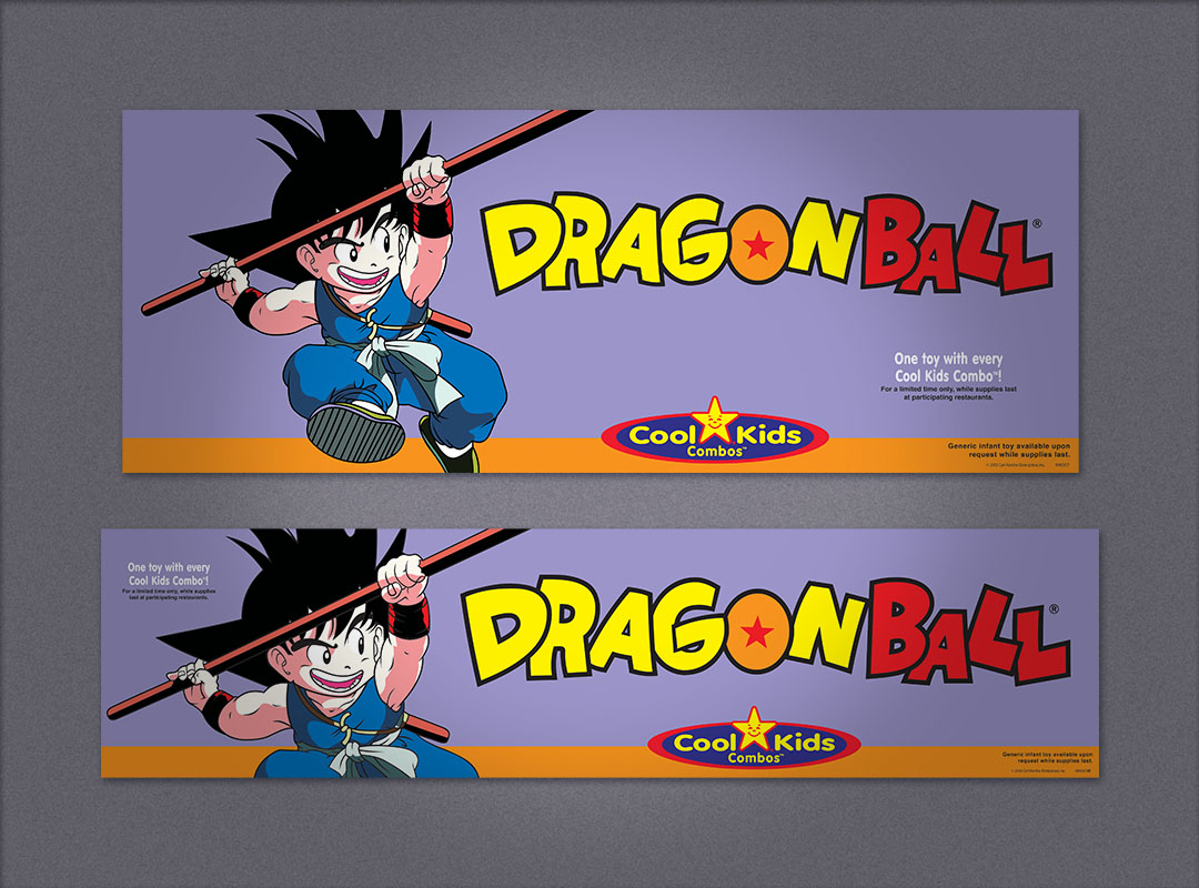 Carls Jr. promotional advertising Peanuts Kids Meal window poster Peanuts Kids Meal counter card Peanuts Kids Meal translight and mini banner Peanuts Kids Meal sales sheet Dragonball window poster Dragonball counter card Dragonball translight and mini banner Carls Jr. point-of purchase promotional advertising for the Kids Meals < | design | advertising design | >