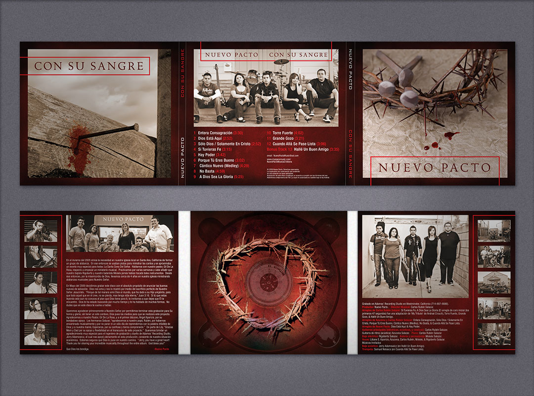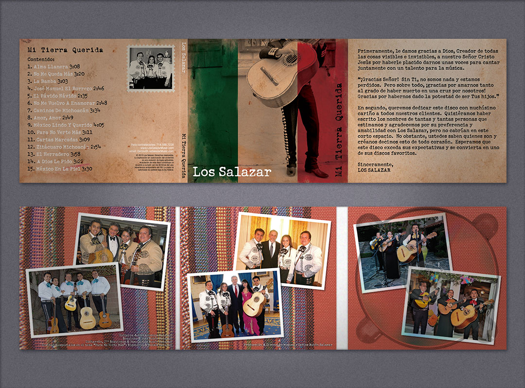 CD packaging designs for Nuevo Pacto [ a contemporary Spanish language band ] and Los Salazar [ a traditional Mariachi band ]