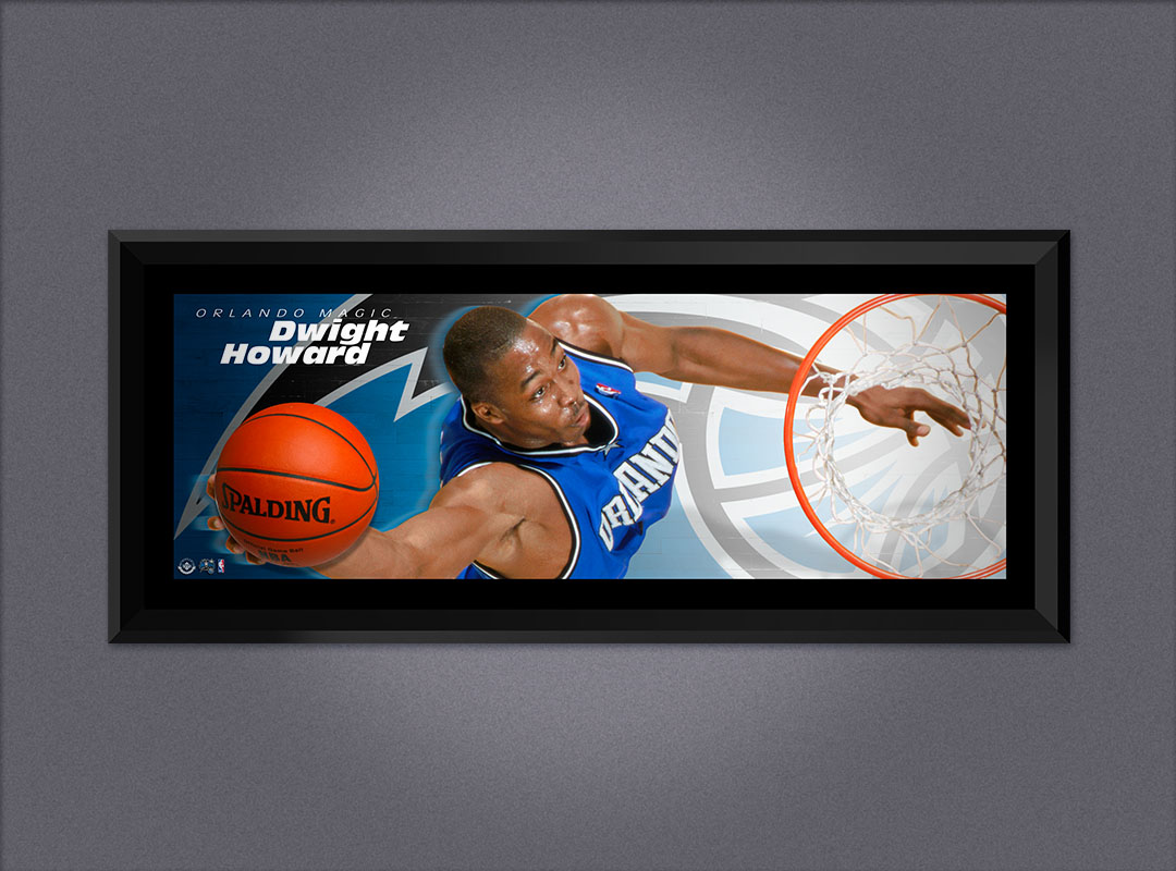 Upper Deck [ sports collectibles ] “Breaking Thru” signed collectibles for Dwight Howard and Tiger Woods which feature a basketball and a golf ball protruding through the glass of the frame