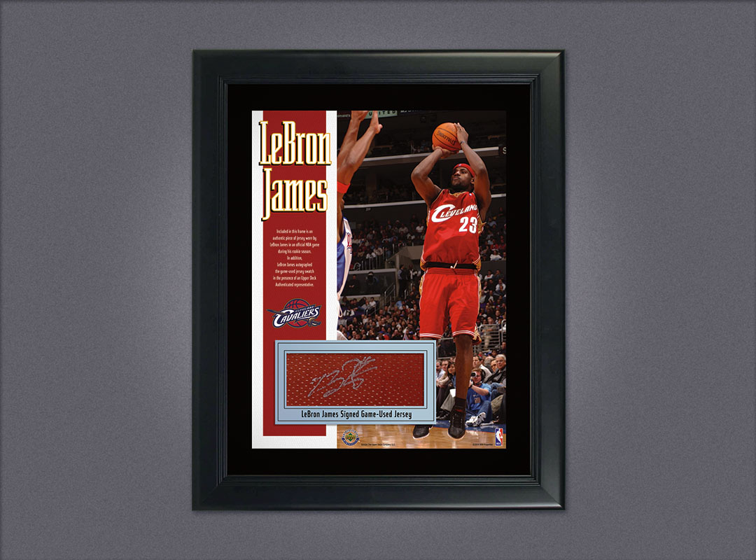 Upper Deck [ sports collectibles ] LeBron James signed and framed Game-Used Jersey collectible and 2 poster designs