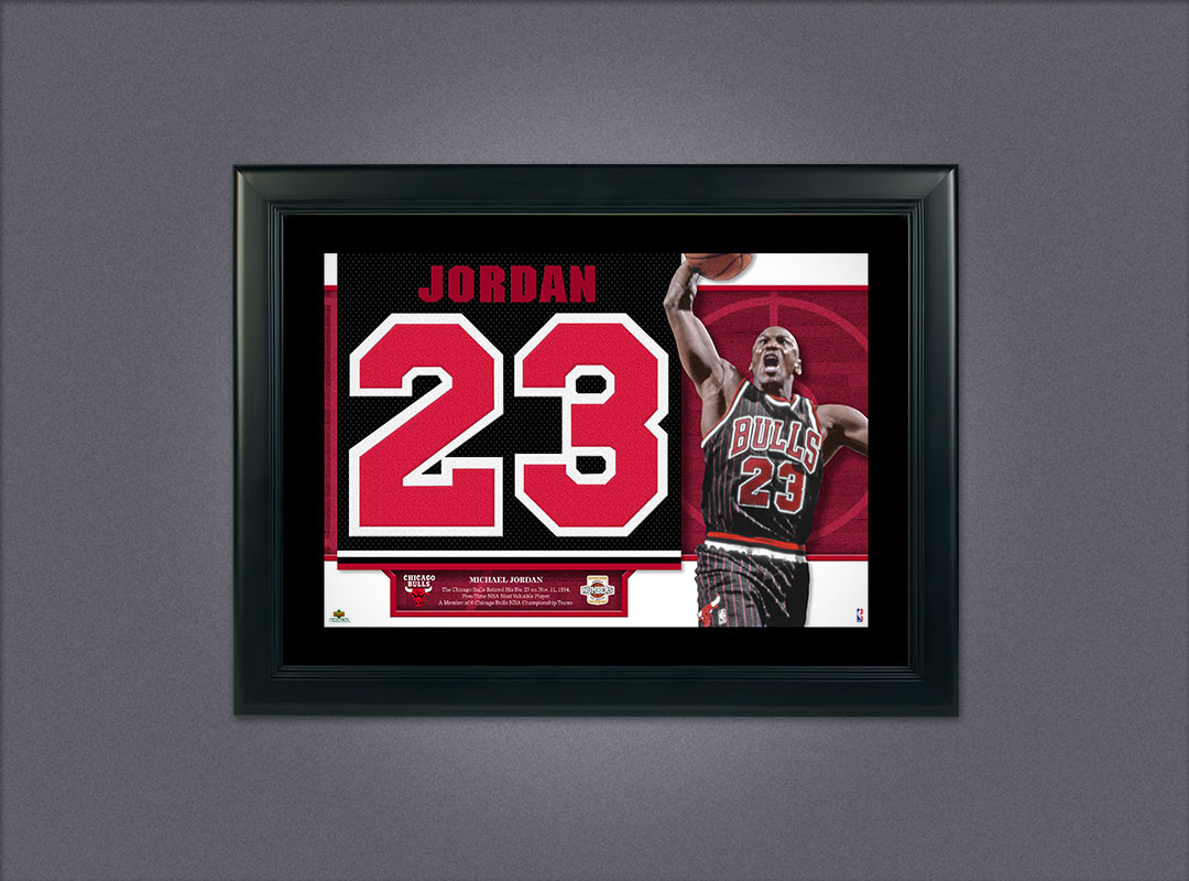 Upper Deck [ sports collectibles ] retro styled poster and 3 framed Retired Jersey Numbers framed collectibles
